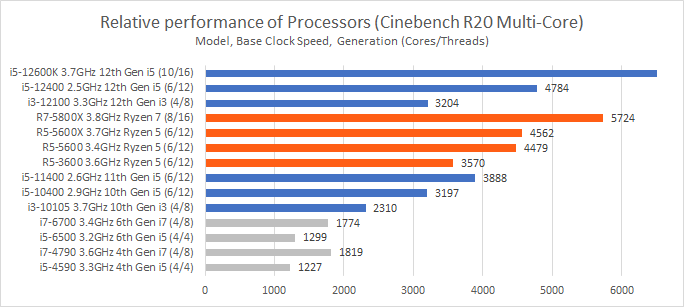 The best way to think about i3, i5 and i7 is good, better and best.. but todays good is sometimes better than yesterdays best! In car terms that would be like comparing the Toyota Corolla (i3) vs the Toyota Camry (i5). Most people would argue that the Camry is a better car than the Corolla because its the next model up in the range. But very few people would recommend buying a 20 year old Camry as a better option over a brand new Corolla – the new car is more fuel efficient, faster, safer and better in almost every way. Computers advance so rapidly with changes in technology that what happens in 20 years in cars, happens in 3 years with desktops… so comparing a 3 year old i5 10400 (6 core) with a brand new i3 12100 (4 core) is a similar comparison… perhaps unsurprisingly, the i3 12100 is faster in both single AND multi-core workloads than the i5 10400 despite the “superior” i5 naming and extra core count.